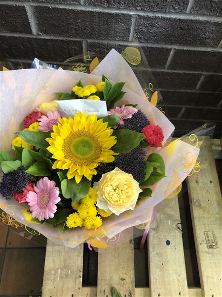 Florist choice hand tie yellows  Peak Time 1