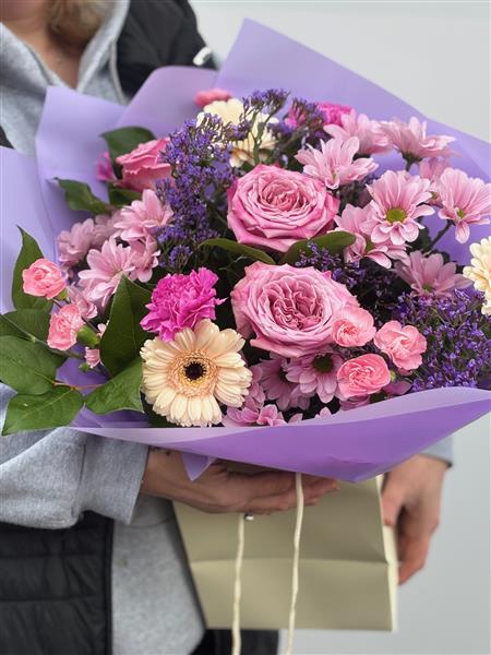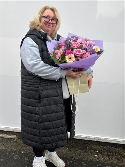 Nothing says Mother’s Day more than this bouquet designed exclusively by our senior florist Julie. Featuring shades of pink and lilac with hints of peach. Expertly hand tied and gift wrapped in co-ordinated wrap an delivered in water it is simply the most perfect Mother’s Day gift.